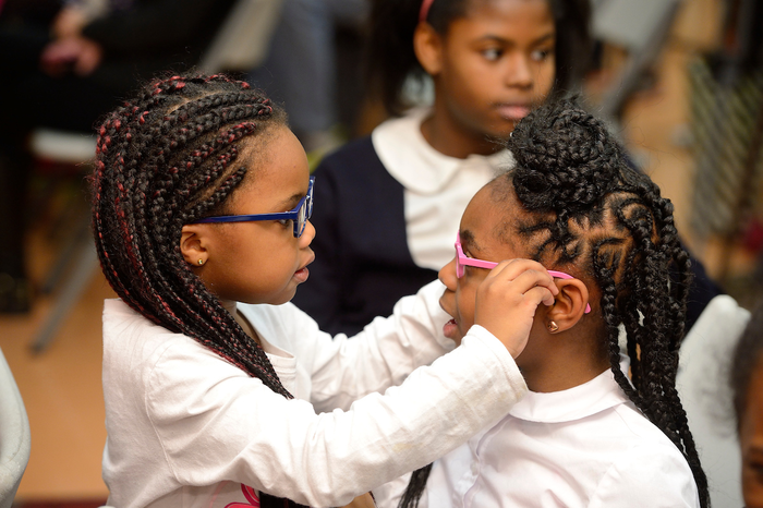 IMAGE: SCHOOL CHILDREN TRYING ON NEW EYEGLASSES THEY RECEIVED THROUGH THE VISION FOR BALTIMORE PROGRAM. view more