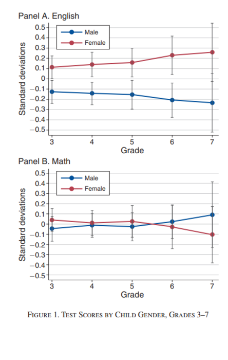 Girls did substantially better in language-related studies than boys, while scores for girls and boys in mathematics were more similar. They found a stronger correlation between parental investment with language scores than they did with math.