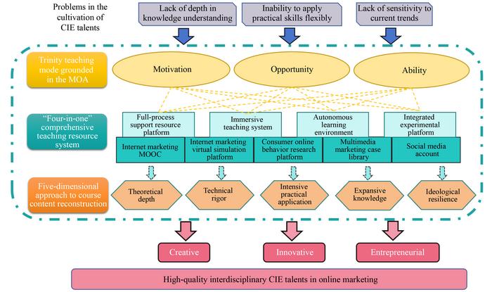 In the digital economy era, higher education needs to cultivate creativity–innovation–entrepreneurship (CIE) talents. The Internet marketing course at Wuhan University redesigned its teaching to address challenges in traditional teaching methods.